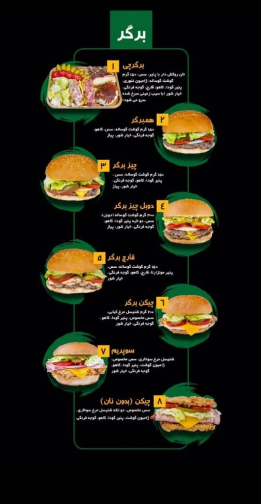 (عکس تمام منو این رستوران در کالری این آگهی است. )